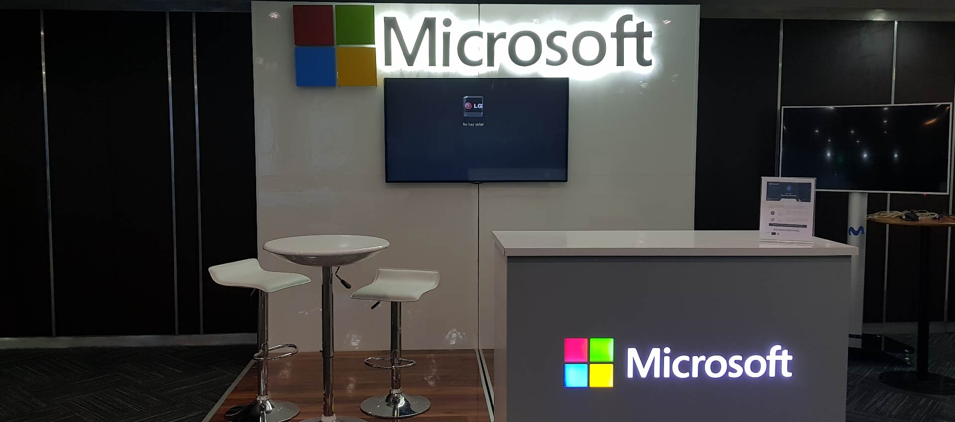 El stand estaba compuesto por diversas piezas escenográficas, como mueblería, letras retroiluminacas, base de piso flotante, puffs, mesa de centro y sillas. Todo en una composición armónica, elegante que brinda bienestar a los que se incorporan en el ambiente del stand.