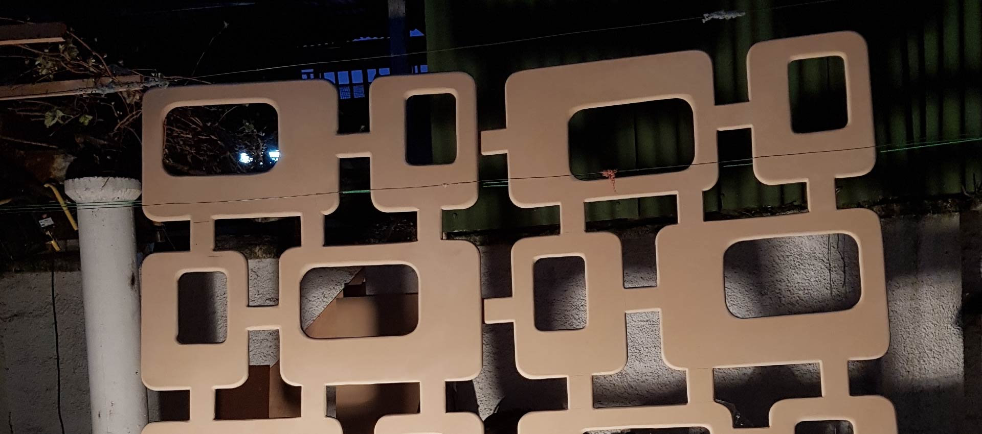 El separador de ambiente fue construido en material MDF de 15mm de espesor, con un diseño ahuecado en su interior para la correcta visión de los espacios adyacentes. Se incluyo la instalación completa de este producto.
